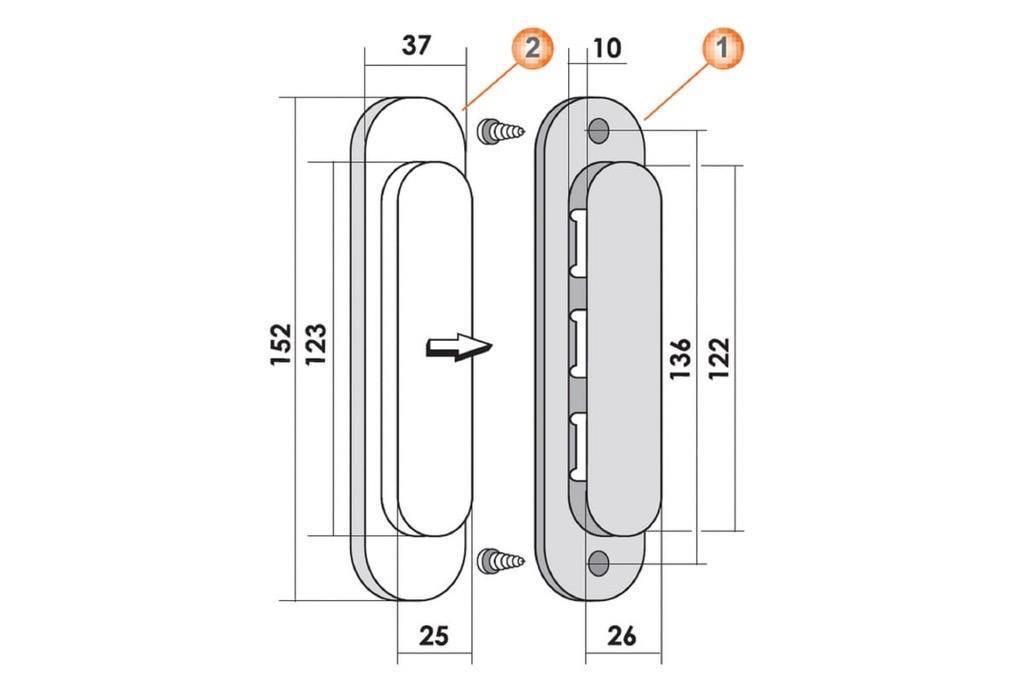 Дверная ручка для раздвижных дверей  — это фурнитура для раздвижных дверей, подходящая как межкомнатным створкам, так и мебели, например, шкафам-купе, в комплекте 1 шт.