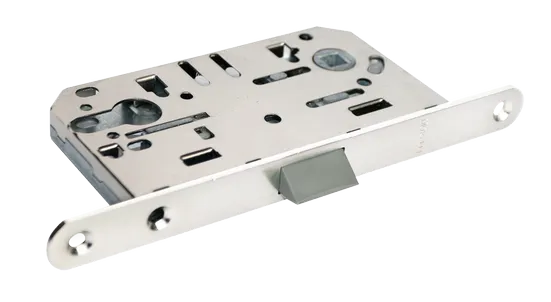 Защелка под цилиндр с пластиковым язычком используется для бесшумного запирания межкомнатных дверей ключом.