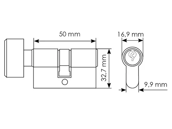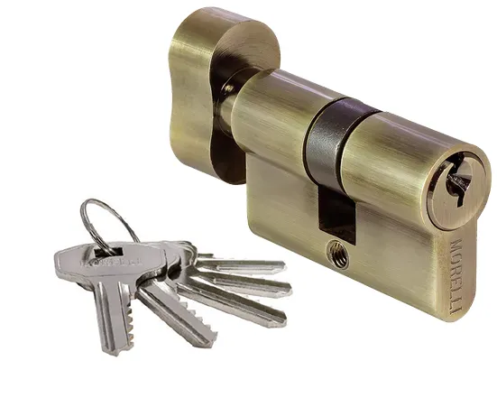 Ключевой цилиндр с заверткой для двери вставляется в замок или защелку для закрытия ключом с одной стороны помещения и поворота кноба с другой.