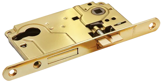 Замок с ригелем под ключевой цилиндр для межкомнатной двери комплектуется с ключевым цилиндром, соответствующим ширине полотна. Подходит для установки, например, на дверь кабинета. Для надежности запирания помимо обычного язычка, используется дополнительный ригель.